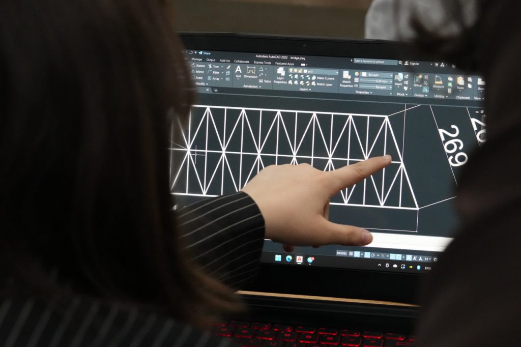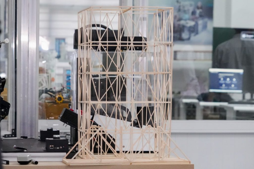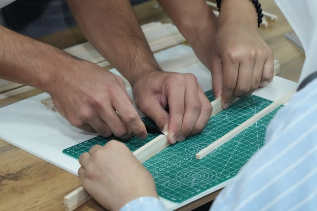 During the first three days of the contest, students are divided into teams and working on designing bridges and towers using small sticks.