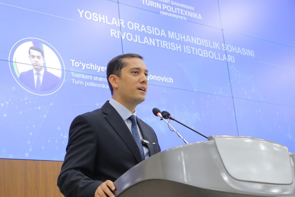 Tadbirda Toshkent shahridagi Turin politexnika universiteti rektori Olimjon To‘ychiyev yoshlar bilan uchrashib, muhandislik sohasining bugungi kundagi ahamiyati, zamonaviy tendensiyalar hamda istiqbolli yo‘nalishlar haqida taqdimot qildi. Jumladan, sun’iy intellekt, robototexnika, yashil energetika kabi yo‘nalishlar muhandislik rivojining asosiy drayverlari sifatida alohida ta’kidlandi.